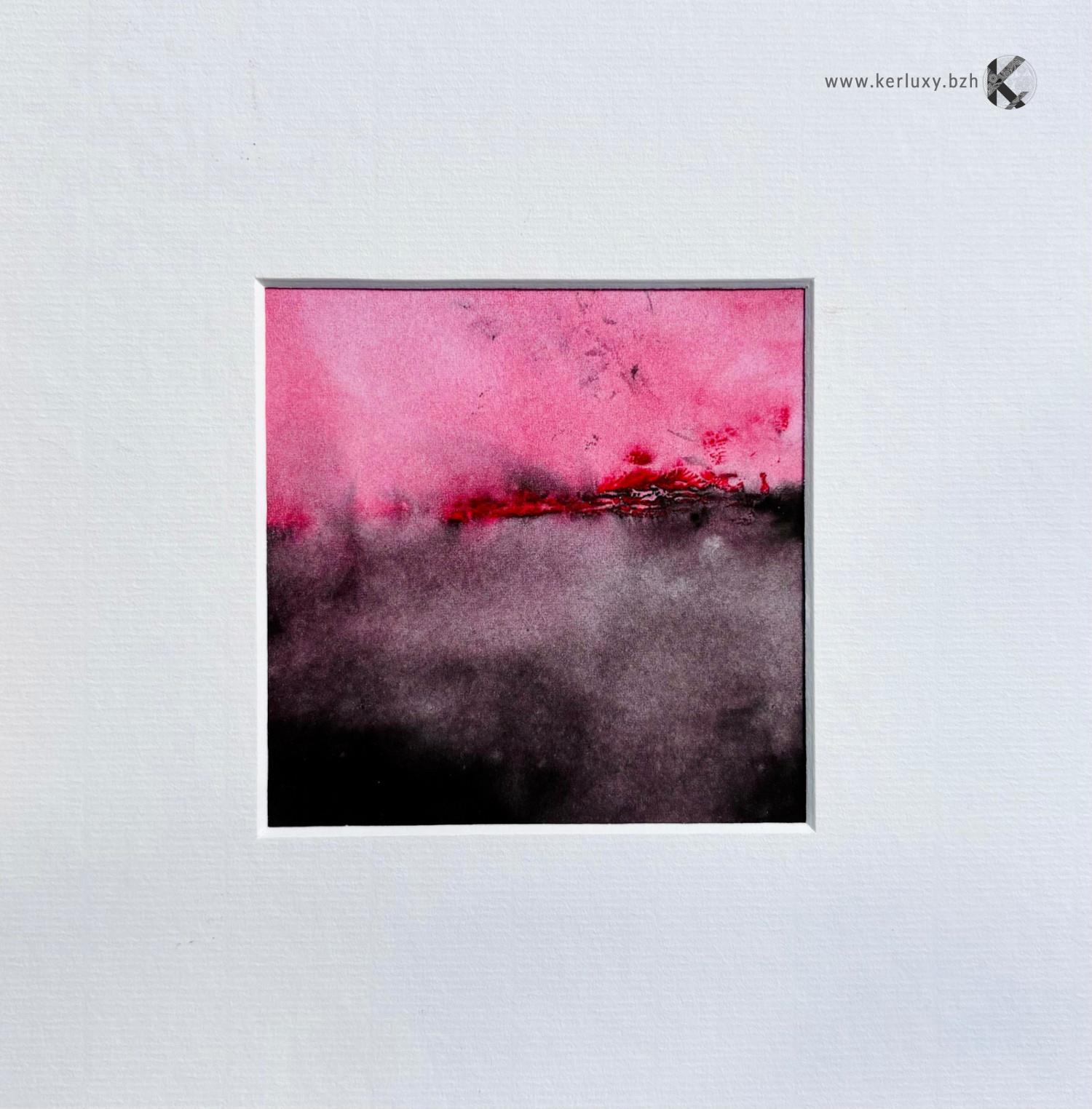 Matière : encre et acrylique sur papier, vendue avec un passe-partout 20x20 cm.